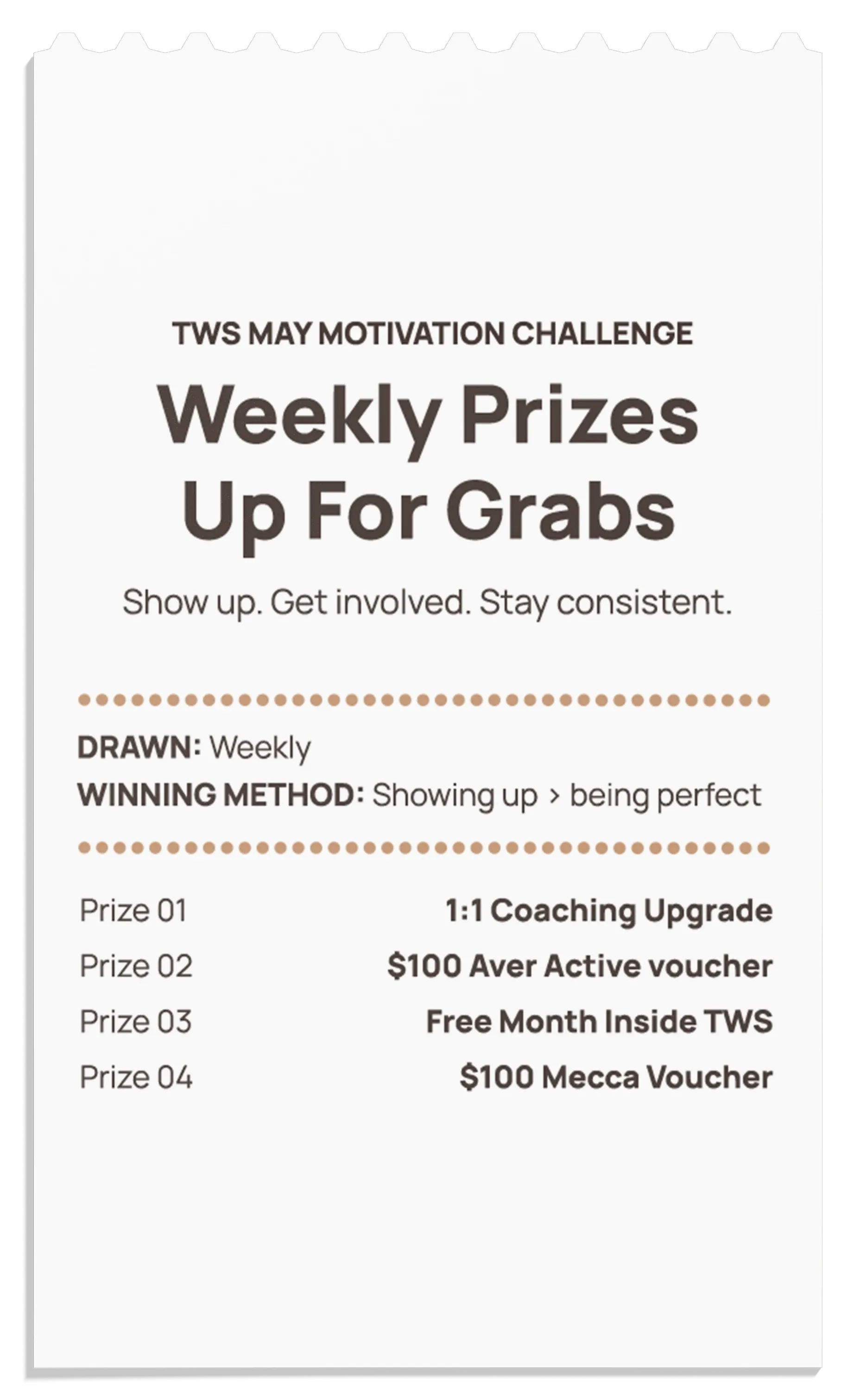Sign up to any TWS membership to start the May Motivation Challenge on May 1st